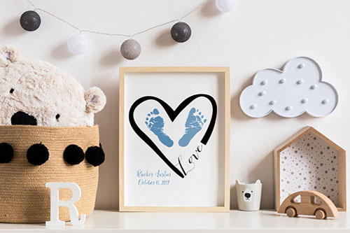 Make your baby's footprints into a work of art! Once you pay for your Unique Baby Print, we will email you details on how to get us your baby's prints, personal information and your choice of colors that you would like on your print. Once we have those details back to us, it takes 3-5 days to get your digital print. This make a great baby shower or grandparents gift too!